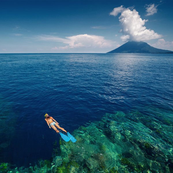 This remote region features active volcanoes, historic forts, spice plantations, and pristine coral reefs teeming with life.